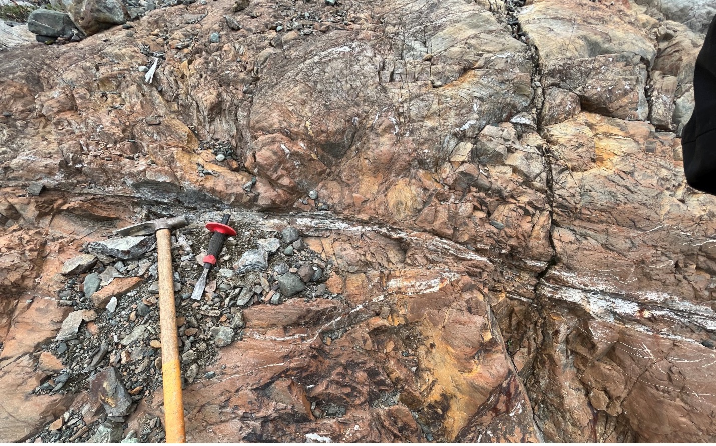 Reconnaissance of recently exposed fresh outcrop on the eastern area of the Fairweather Concession has led to the discovery of three significant polymetallic mineralized zones referred to as the Galileo, Triton and Launch zones. These zones were observed to contain precious metals hosted in structurally associated veining and semi-massive sulphide pods and were found in close proximity to the Triassic-Jurassic contact commonly known as the Kyba Red line. This fault contact, between Triassic Stuhini and Jurassic Hazelton units, trends northerly through both the Fairweather and Delta concessions forming a previously unmapped “Red Line” which may represent a low-angled thrust fault which occurs commonly throughout the region.