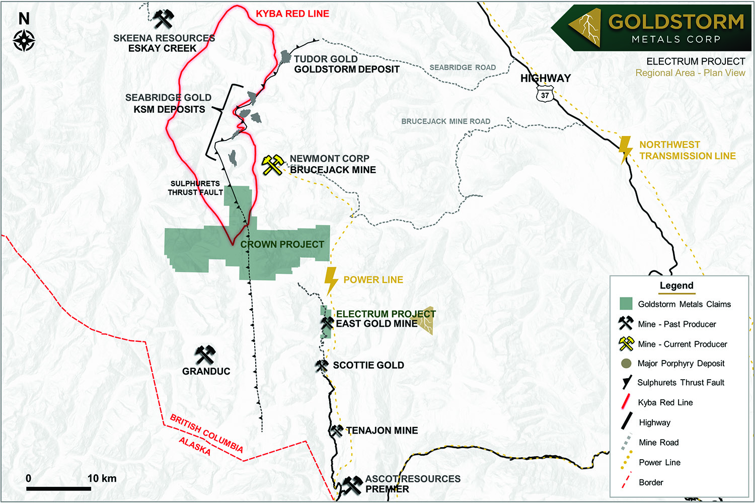 Goldstorm Metals Corp. is a precious and base metals exploration company with a large strategic land position in the Golden Triangle of British Columbia, an area that hosts some of the largest and highest-grade gold deposits in the world. Goldstorm’s flagship projects Crown and Electrum cover an area that totals approximately 16,469 hectares over 7 concessions, of which 6 are contiguous. The Crown Project is situated directly south of Seabridge Gold’s KSM gold-copper deposits and Newcrest Gold’s Brucejack/Valley of the Kings gold mine. Electrum, also located in the Golden Triangle of BC, is situated directly between Newmont Corporation’s Brucejack Mine, approximately 20 kilometers to the north, and the past producing Silbak Premier mine, 20 kilometers to the south.