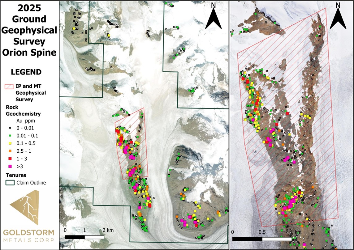 VANCOUVER, B.C., August 6, 2025 – Goldstorm Metals Corp. (TSXV: GSTM) (FRA: B2U.F) (“Goldstorm” or the “Company”) is pleased to announce that it has contracted with Simcoe Geoscience Limited to complete ground-based Magnetotelluric (MT) and Induced Polarization (IP) geophysical programs (the “Programs”) targeting the Copernicus Zone and other geochemical anomalies along the Orion Spine on the Company’s 100%-owned Crown Property. The Crown Property covers approximately 16,000 hectares situated adjacent to, and due south of, both Seabridge Gold Inc.'s KSM gold-copper project and Newmont’s Brucejack gold mine. See below to view the Crown Property location and concession map.